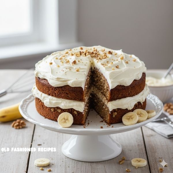 This Banana Bread Cake with Cream Cheese Frosting is a recipe that has been made, shared, and loved by home bakers for decades. It delivers everything people adore about banana bread — the sweetness of ripe bananas, the buttery softness, and that moist, melt-in-your-mouth crumb — but turns it into a cake that slices beautifully and pairs perfectly with a rich cream cheese frosting.
