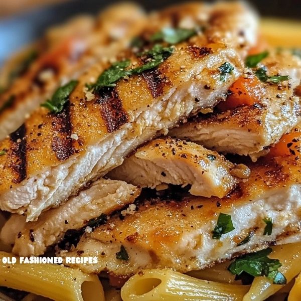 - Place chicken on top of the creamy pasta.