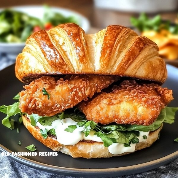 Whether you’re hosting brunch or craving something special, the Crispy Chicken Croissant Sandwich delivers big flavor with minimal effort. Its balance of textures, rich taste, and visual appeal make it a standout dish that’s both comforting and luxurious. 🥐🍗💛