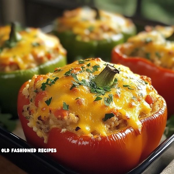 - Mix in shredded cheese, then fill each pepper with the mixture.