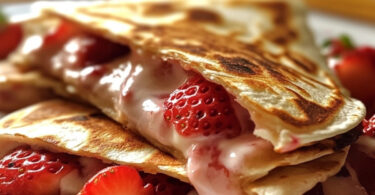 🍓✨ Strawberry Cheesecake Quesadillas – A Crispy, Creamy Dessert...