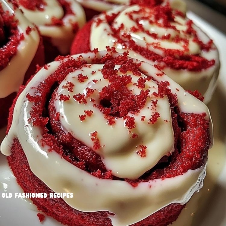 • Serve immediately and enjoy these gooey, red velvet cinnamon delights!