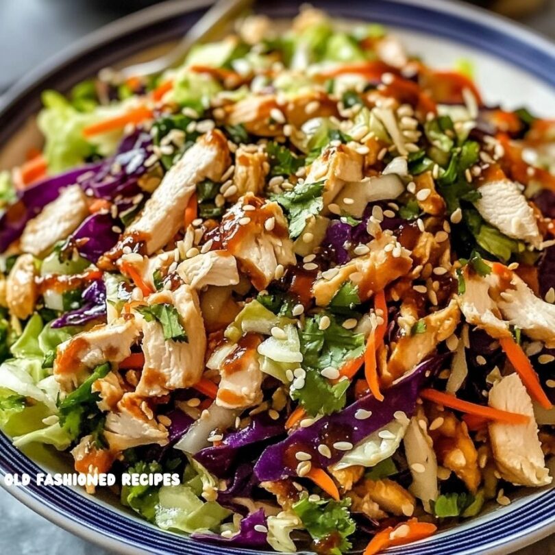 Whether you’re preparing this for a quick lunch, a light dinner, or a meal prep option, it’s a delicious and nutrient-rich choice. The crunch of fresh veggies, the sweetness of sesame dressing, and the savory chicken create a balanced, irresistible combination.